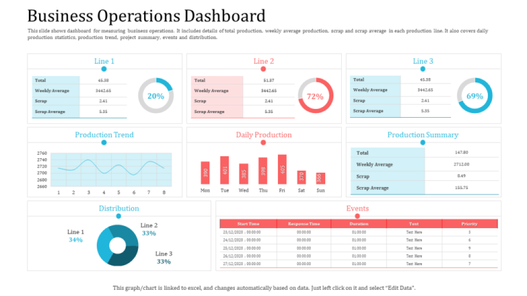 Employee performance metrics, process data, inventory records